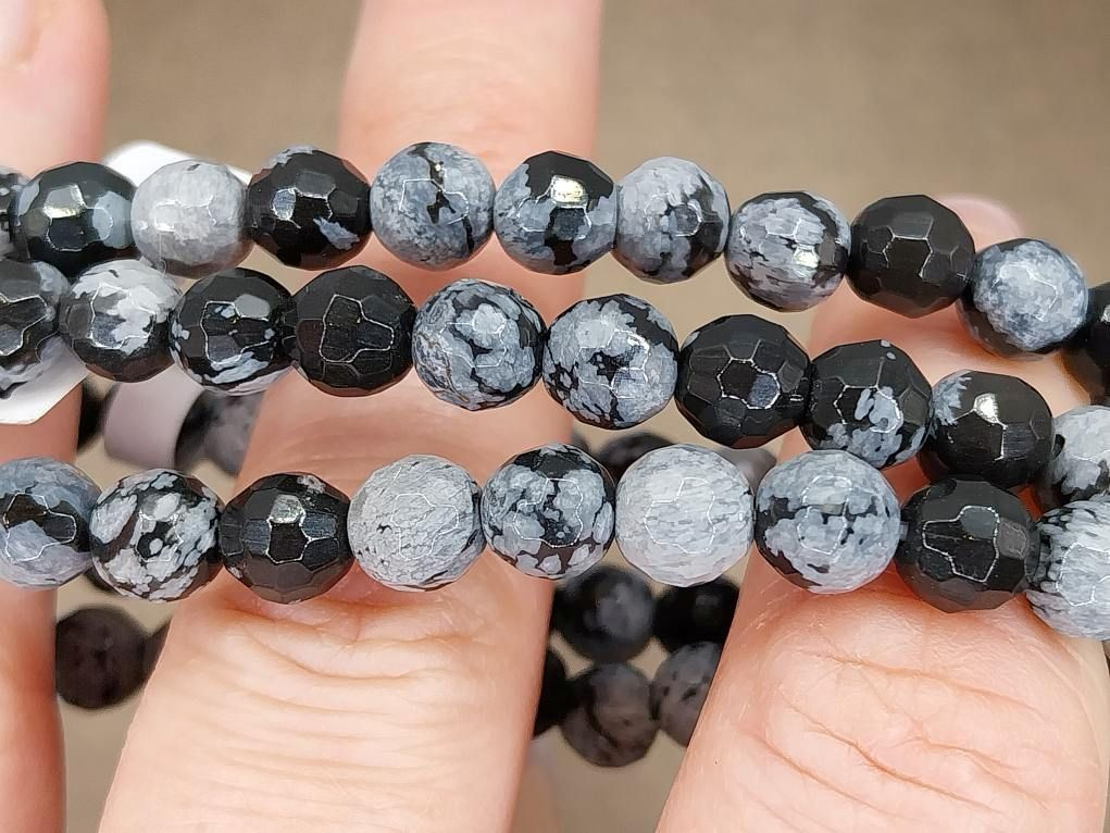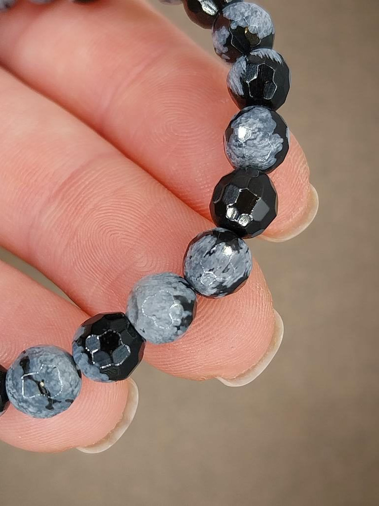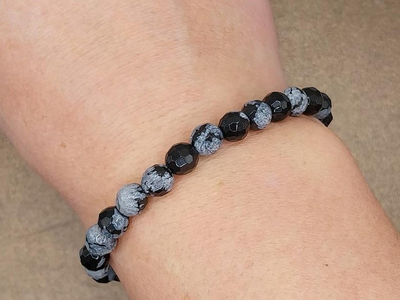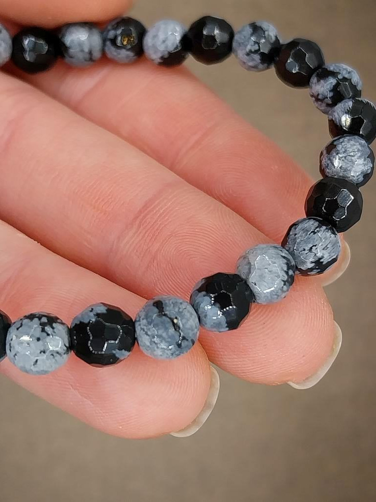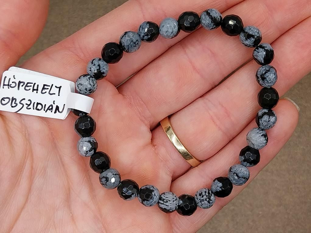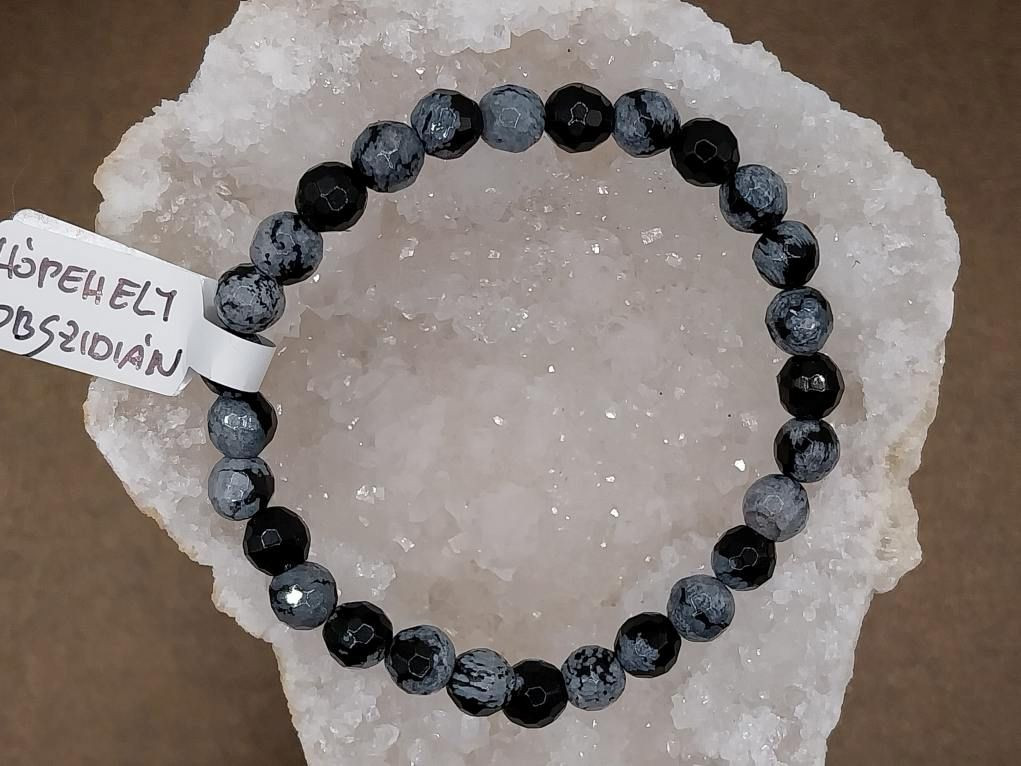 Hópehely obszidián karkötő fazettált 6 mm